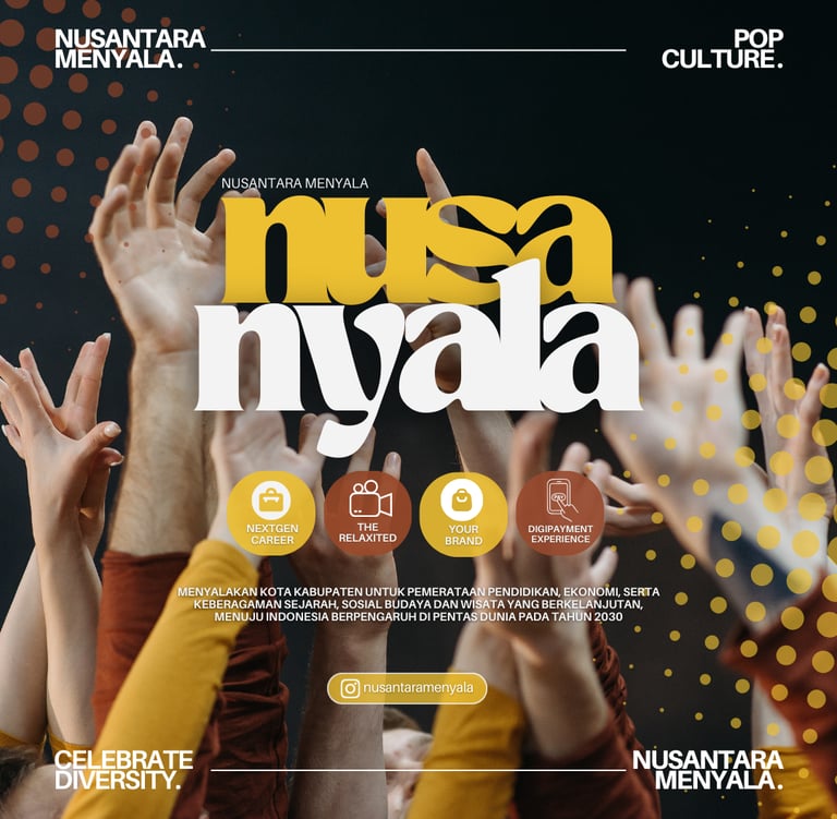 Nyalakan Kota Kabupaten untuk Pemerataan Pendidikan, Ekonomi, serta keberagaman Sejarah, Sosial Budaya dan Wisata yang berkelanjutan, menuju Indonesia Berpengaruh di Pentas Dunia pada tahun 2030